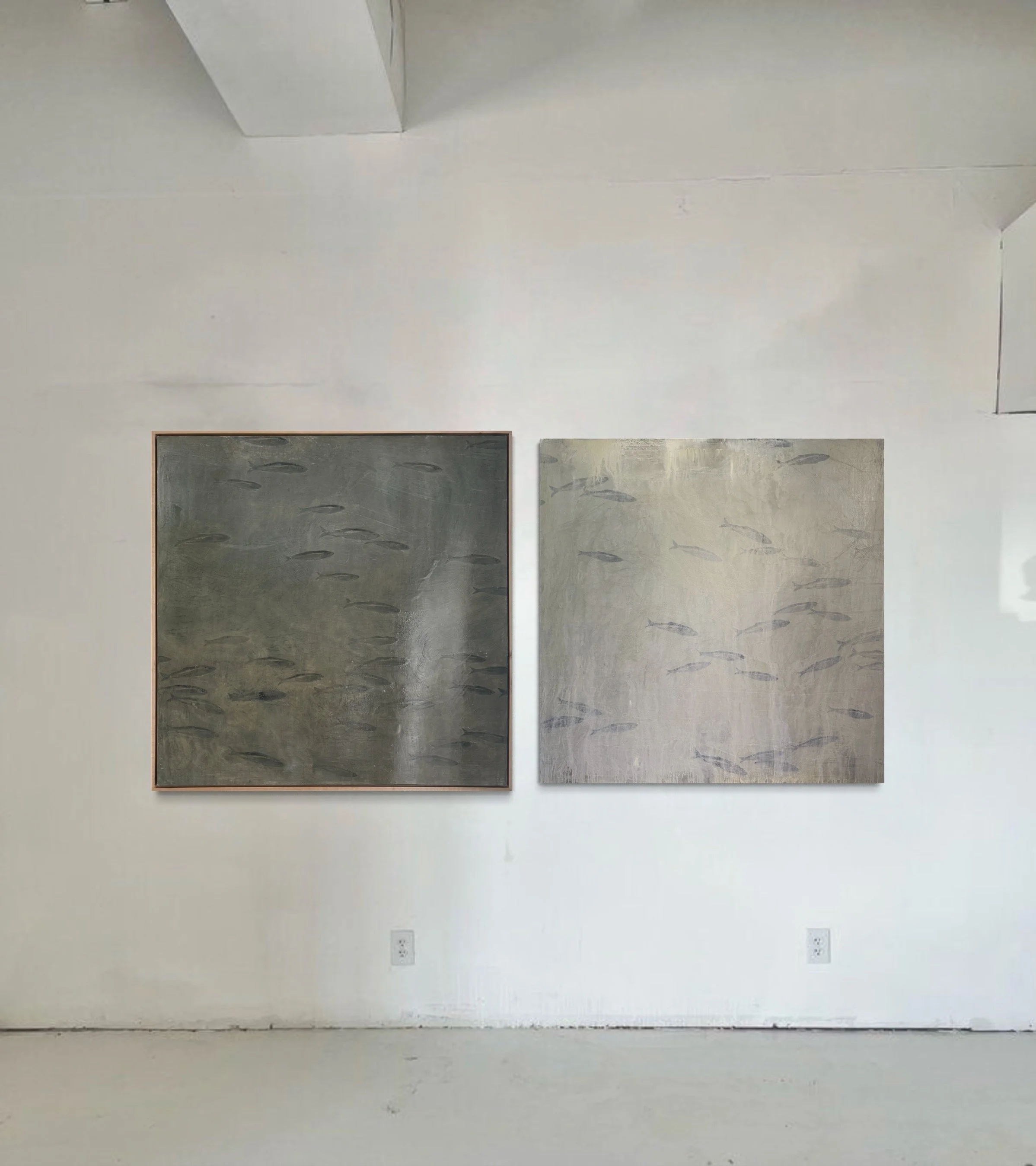 A living collection of works created outside of formal releases. Made during quiet studio hours, these paintings emerge intuitively, in between collections and commissions, offering a glimpse into the artist’s evolving practice.